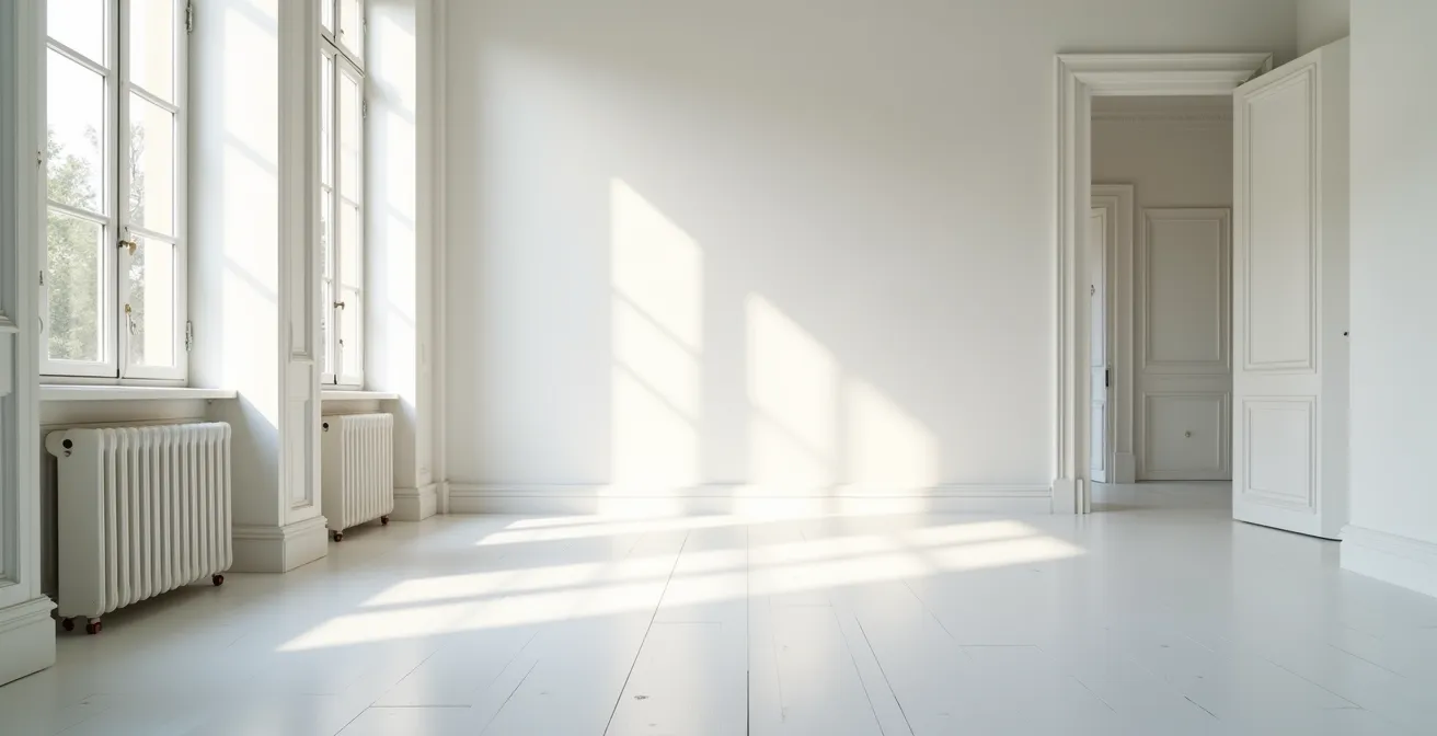 L’erreur classique est d’installer une étagère brute, d’une couleur ou matière différente du mur, qui va immédiatement attirer le regard et « casser » le volume de la pièce. La clé du succès réside dans la discrétion absolue, grâce à la technique de l’étagère caméléon. Le principe est simple : rendre l’étagère et ses fixations quasi invisibles en les peignant de la même couleur exacte que le mur sur lequel elles sont posées. L’étagère se fond dans son environnement, et seuls les objets posés dessus semblent flotter.
