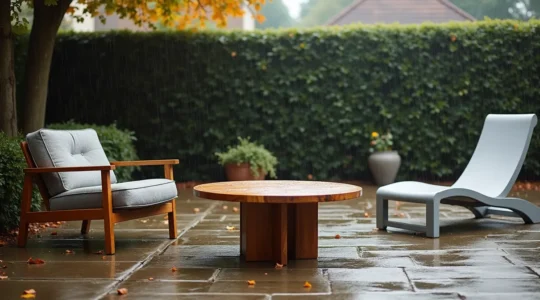 La résine tressée séduit par son esthétique « naturelle », mais attention aux premiers prix qui s’effilochent après deux étés au soleil. Privilégiez les fibres synthétiques denses et vérifiez la présence d’un traitement anti-UV garanti. Le bois, lui, évolue : soit vous acceptez son grisaillement naturel comme une patine noble, soit vous vous engagez dans un entretien bisannuel à l’huile. Les deux options sont valables, à condition d’assumer le choix dès le départ.
