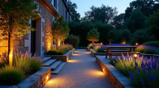 Les guirlandes guinguette créent une ambiance festive instantanée pour un investissement modeste (30 à 80 €). À l’inverse, l’erreur classique consiste à sur-éclairer le jardin comme un stade : privilégiez plusieurs sources douces (spots LED 3000K) plutôt qu’un projecteur puissant. L’uplighting, qui consiste à éclairer un arbre par le bas, sculpte dramatiquement le feuillage et structure l’espace nocturne en créant des points focaux lumineux.