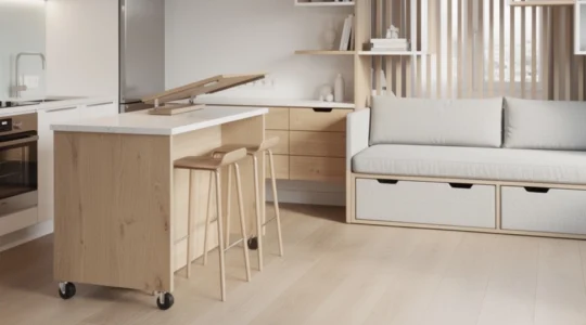 Les meubles modulables se déclinent en trois grandes familles. Les meubles escamotables (lits muraux, bureaux rabattables) disparaissent totalement quand vous ne les utilisez pas, idéaux pour les studios. Les meubles pliants (chaises, tables d’appoint) se rangent rapidement mais nécessitent un espace de stockage dédié. Les meubles extensibles (tables consoles, canapés convertibles) conservent une présence permanente tout en s’adaptant à vos besoins ponctuels.