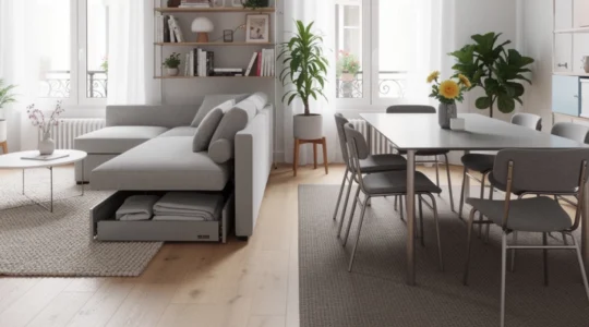 Le choix dépend de votre fréquence d’usage. Une table extensible convient si vous recevez chaque semaine, tandis que des chaises pliantes stockées verticalement suffisent pour les occasions exceptionnelles. L’erreur classique ? Déplier tout son mobilier sans calculer l’espace nécessaire : on se retrouve alors coincé entre la table et le canapé, incapable de circuler normalement.