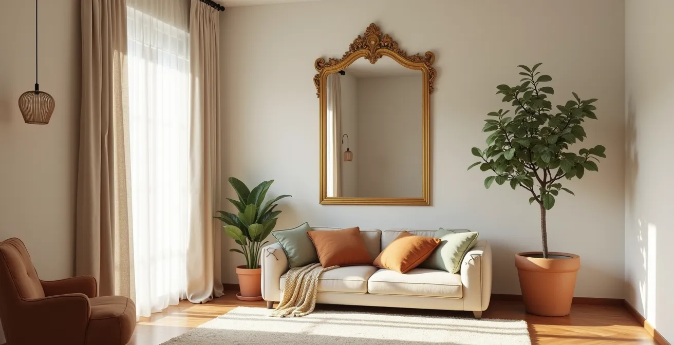 Posé directement au sol et appuyé contre un mur (une astuce parfaite pour les locataires qui ne veulent pas percer), un miroir de grande taille (type psyché) accomplit plusieurs miracles. Premièrement, il double visuellement l’espace en reflétant la pièce. Une entrée de 4m² en paraîtra 8. Deuxièmement, il capture la moindre source de lumière, naturelle ou artificielle, et la redistribue, éclairant ainsi les coins les plus sombres. Le standing de la pièce est immédiatement rehaussé ; l’espace semble plus luxueux, plus réfléchi.
